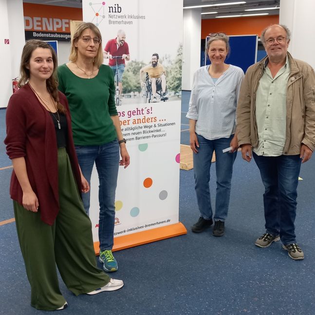 „Im besten Alter“ heißt die Info-Veranstaltung für Senior:innen und zeigt das breitgefächerte Angebot für Menschen „im besten Alter“ in Bremerhaven. Die AG Barrieren stellt den Barrieren-Parcours zur Verfügung, damit mögliche Barrieren im Alter erlebbar gemacht werden können. Günther Kerchner aus der AG Barrieren hat die drei Organisatorinnen der Info-Messe Jacqueline Simula, Verena Springer, Heike Eulitz eingewiesen und freut sich riesig, dass der Barrieren-Parcours wieder einmal sinnvoll zum Einsatz kommt. Und das perfekt eingespielte Team vom Förderwerk hat beim Aufbau wieder einmal ganze Arbeit geleistet und den knapp 100 qm großen Parcours in Windeseile startklar gemacht. Danke :-)
