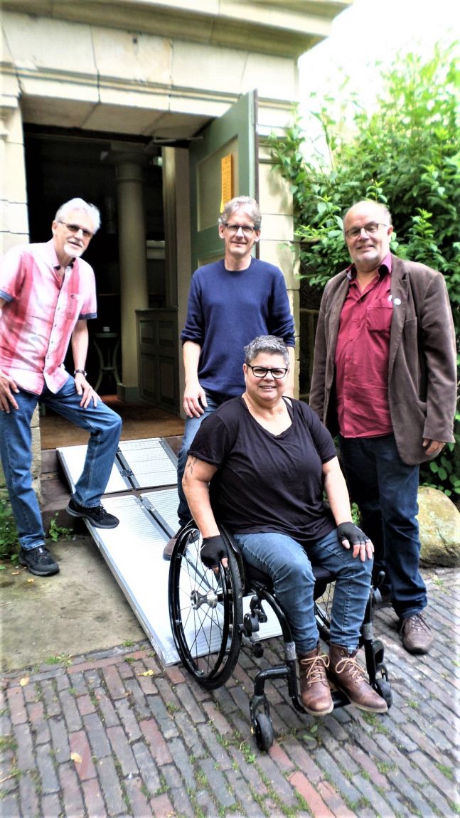Anfang Juli trafen sich Günther Kerchner und Silvana Nowacki als Vertreter und Experten der Arbeitsgruppe Barrieren vor der "Alten Kirche" in Lehe in Bremerhaven. Der zuständige Pastor Dietmar Meyer war auf der Suche nach einer Lösung für mehr Barrierefreiheit beim Besuch seiner Kirche.