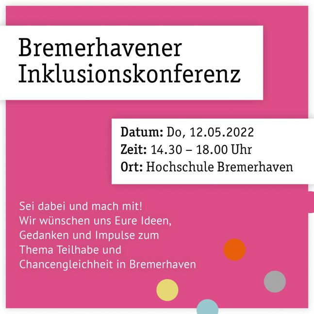 Die Vorbereitungen für die Inklusionskonferenz am 12. Mai laufen auf Hochtouren. Wer noch dabei sein möchte, kann sich ab sofort anmelden. Alle weiteren Informationen finden Sie hier. Wir freuen uns auf Sie!