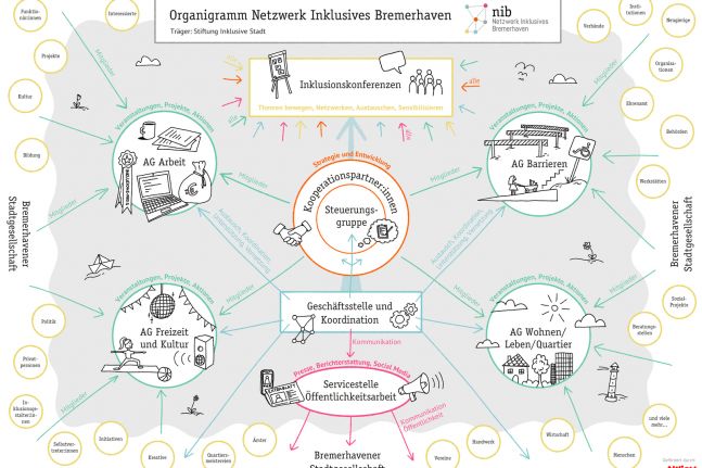 Wir freuen uns riesig, denn das Graphic Recording Kunstwerk, das bei der letzten Inklusionskonferenz entstanden ist, hat eine tolle Ausstellungsfläche gefunden. Die Stäwog präsentiert es nun in Bremerhaven in der Barkhausenstraße 22 in der ...