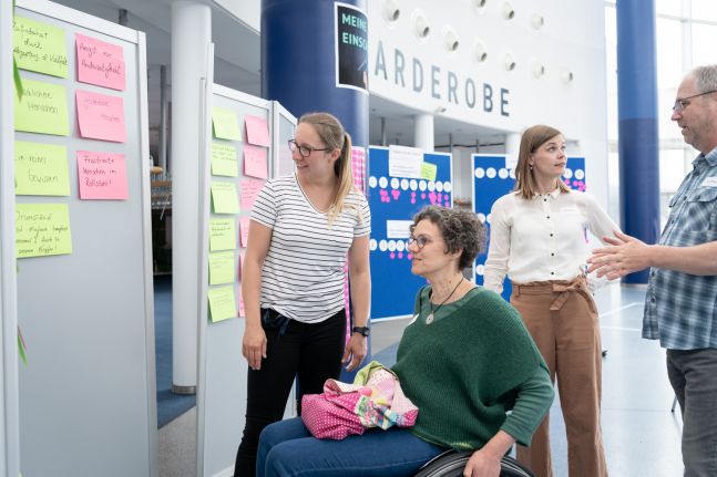 Was ist dein Wunsch für die Zukunft? Welche Vision hast Du? Jutta Redlich und Leefje Roy haben an ihrer Arbeitsstation bei der Inklusionskonferenz am 21.09.2023 mit den Teilnehmer:innen konkrete Wünsche für ein barrierefreies und inklusives ...