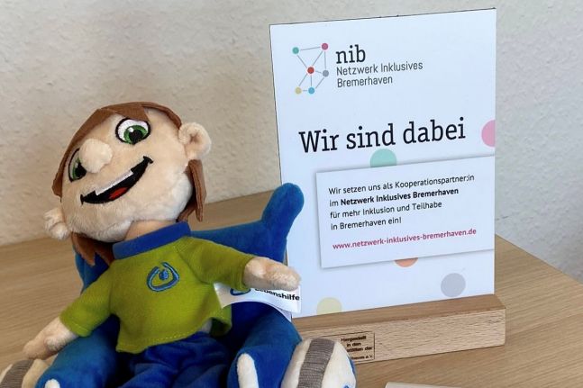Wenn ihr in Zukunft mal solch ein Schild irgendwo hängen oder stehen seht, dann bedeutet das, dass Ihr eine:n Kooperationspartner:in des NIB gefunden habt. Dieses Schild wurde bei der Lebenshilfe Bremerhaven gefunden.