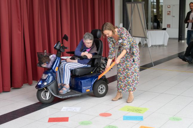 Welche Werte teilen wir in einem barrierefreien und inklusiven Bremerhaven? Wie gehen wir miteinander um? In was für einer Gesellschaft möchten wir leben? Yana Gebhardt hat als Moderatorin bei der Inklusionskonferenz am 21.09.2023 an ihrer Arbeitsstation mit den Teilnehmer:innen einen „Werte-Teppich der Zukunft“ erarbeitet und ausgelegt und diese Werte erlebbar und nachspürbar gemacht. Am Ende der Konferenz sind alle Teilnehmer:innen über diesen „Werte-Teppich der Zukunft“ aus der Zukunft zurück in die Gegenwart gelaufen und gerollt. Das war ein tolles Gefühl und lässt uns auf eine Zukunft freuen, in der das wertschätzende Miteinander, aufeinander Achtgeben und niemanden aus dem Blick verlieren unsere Gesellschaft auszeichnen wird. Wir sind immer noch ganz beseelt von diesem wunderbaren Erleben.